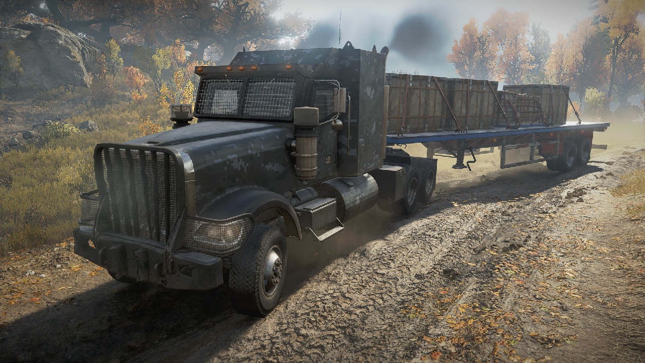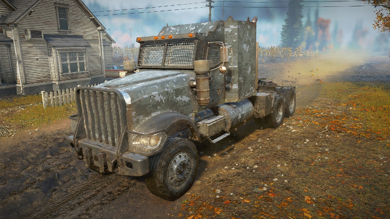 DLC 「 Navistar 5000-MV」で追加される牽引型ヘビートラックで、高い牽引能力を誇るパワフルな一台。軍用車らしくデジタル迷彩が施されている。